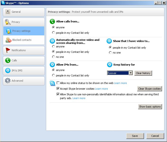 Skype offers you a variety of security features. Although the service is set to save your messages for up to three months, you can further secure your messages by requesting them to be deleted after a certain period of time. Skype is a fairly secure communication tool and encryption cannot be disabled. Skype uses publically documented secure encryption techniques in order to keep user security and privacy at the forefront. Some may find that there are security flaws though because users do not have to have any proof of identity when they register for Skype. Skype has been banned by some network administrators on corporate, government and education networks stating that it uses excessive bandwidth and cause create security concerns.
